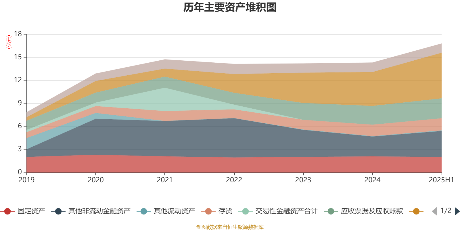 资产重大变化方面,截至2025年上半年,公司货币资金较上年末增加34.44%,占公司总资产比重上升4.51个百分点;固定资产较上年末减少2.69%,占公司总资产比重下降2.49个百分点;其他非流动金融资产较上年末增加30.29%,占公司总资产比重上升2个百分点;应收票据及应收账款较上年末增加6.47%,占公司总资产比重下降1.57个百分点。