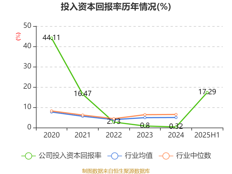 盈利能力方面, 2025年上半年公司加权平均净资产收益率为18.4%,同比上升18.46个百分点。公司2025年上半年投入资本回报率为17.29%,较上年同期上升18.44个百分点。