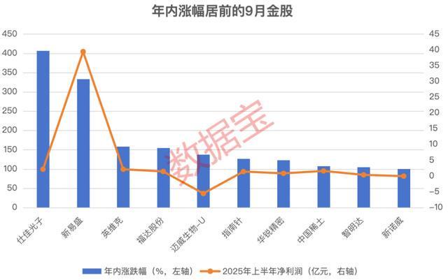 除迈威生物-U、新诺威外,年内涨幅超过100%的9月金股上半年均实现盈利。仕佳光子今年上半年净利润2.17亿元,同比增长超17倍;新易盛今年上半年净利润同比增长超350%。