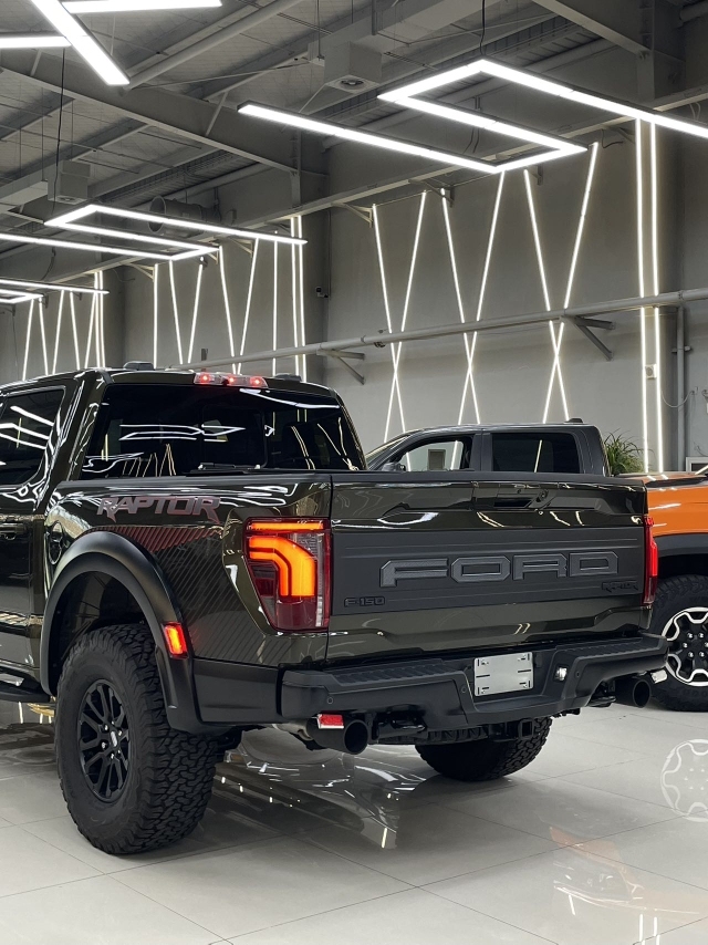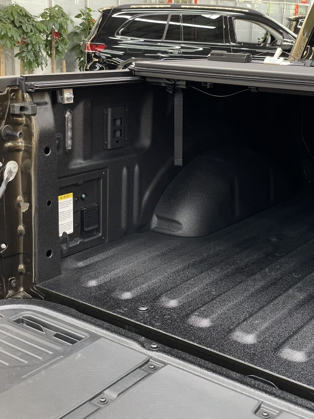 2025款福特烈马猛禽采用了趋于平直的车顶线条,从而获得更好的车内头部空间,同时,贯穿式腰线的使用,也让新车看上去更具层次感,另外,前后侧翼子板微微突出车身,搭配车门下方内凹式的设计,再加上大尺寸轮毂,看上去四平八稳。车尾部分,新车配备了外挂式后备胎,两侧尾灯采用竖状的设计,点亮后效果十分出色,黑色外凸的后保险杠设计很有越野范。