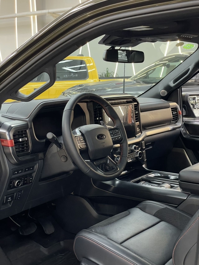 福特烈马猛禽车内采用硬朗的设计风格,中控台设计主次分明且有层次感,用料也厚实,多功能方向盘造型运动,中控屏幕采用内嵌式的设计增添了车内的时尚感,按键布局合理,档把设计精致,座椅宽大厚实,空间宽敞,实用性强。