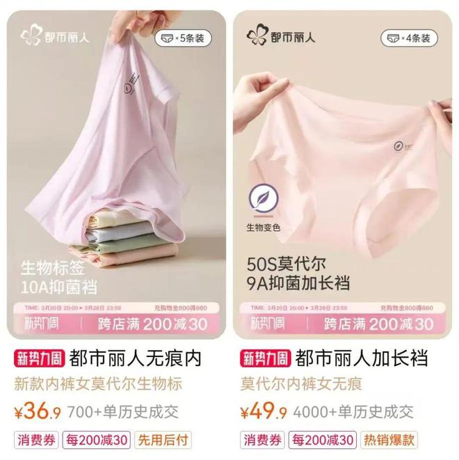 除了将更多门店开到县城,郑耀南在线上也打起“价格战”,打开都市丽人电商旗舰店,单价低于100元的内衣占大多数。