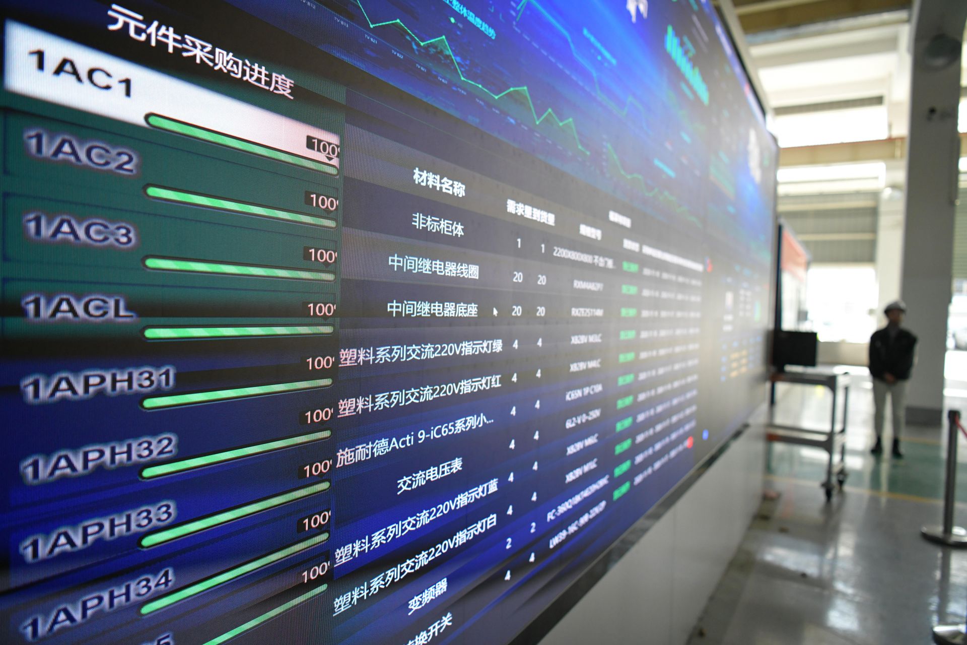 通过大屏幕上显示的内容,蚌埠凯盛工程技术有限公司管理人员可以了解生产情况。(融媒体记者刘晨摄)