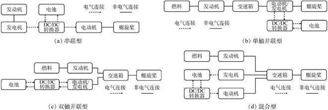 混合电推进系统的构型决定了能量流动的路径与分配方式,是影响系统效率、重量、可靠性和成本的基础。根据一次能源类型和能量转换链的差异,主要分为油-电混合与电-电混合两大类。