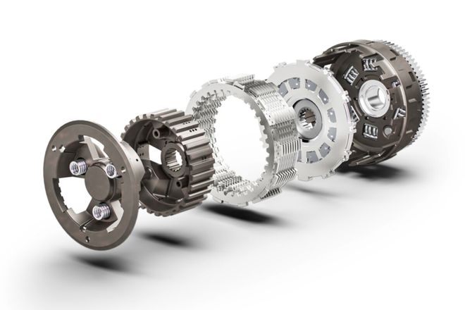 根据KTM的对外公布的AMT技术资料看,车辆是会采用了离心式离合器,也就是我们常见的弯梁车型所采的离合结构。