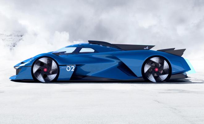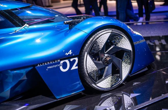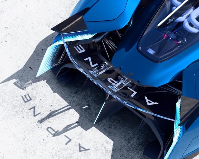 集成在尾灯中的Inconel排气系统不会排放有害气体,而是排出水蒸气,没有污染,为了展示艺术品一般的发动机,Alpine选择了透明的发动机罩,并配有3个百叶窗确保通风效果,车尾的鲨鱼鳍更大更突出,上面印有Alpine徽标、氢的化学式以及从洋红色到蓝色的阴影线,象征着氢气的良性燃烧。